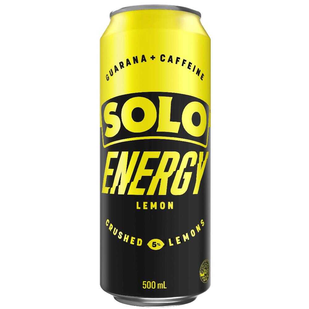 SOLO Energy Lemon delivers the tangy, refreshing taste of SOLO that you know & love combined with guarana and caffeine to allow you to Crush Whatever’s Next! Made with 5% Crushed lemons.